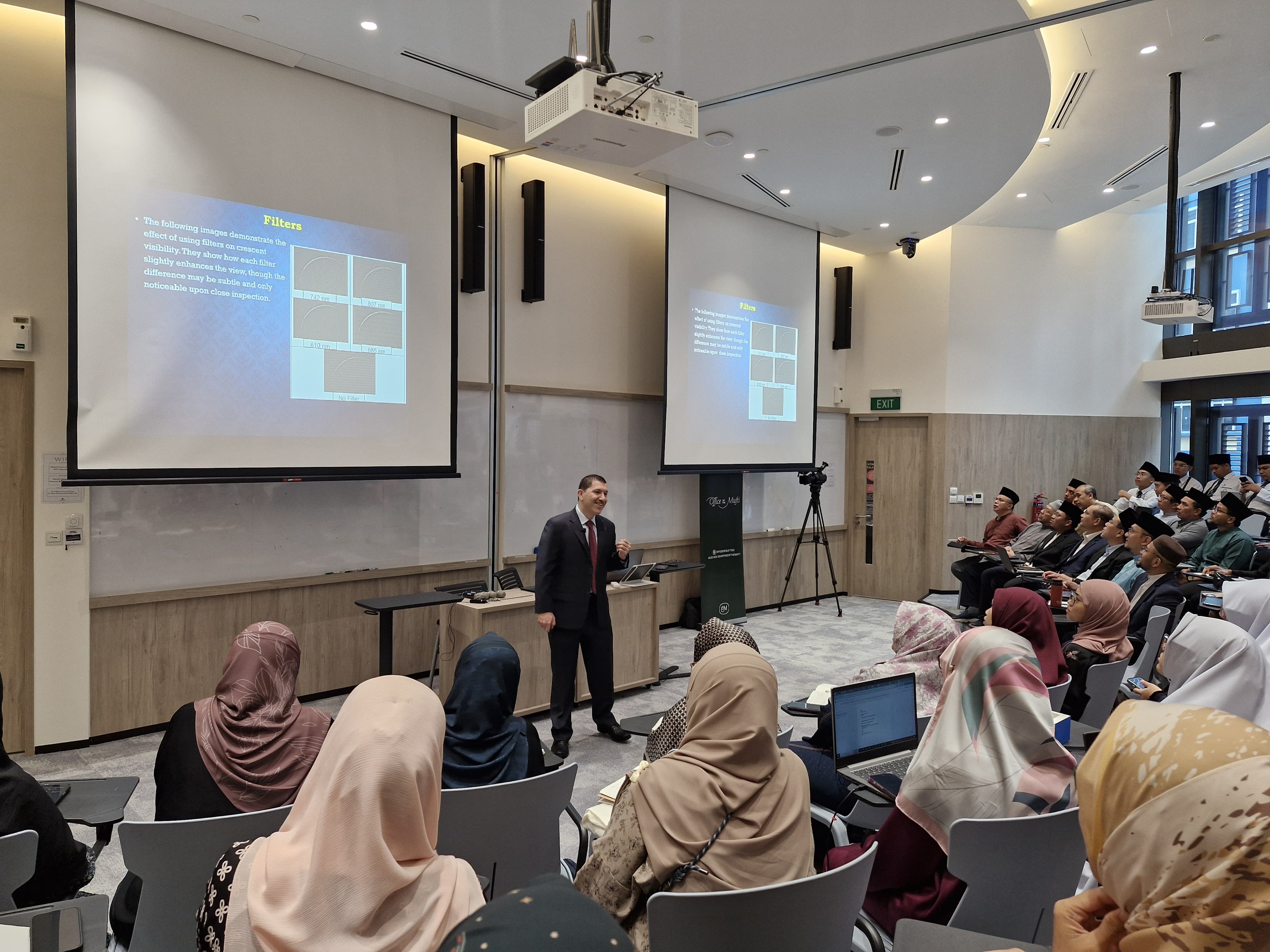 وقد أقيمت ورشة العمل يوم الإثنين 07 يوليو، حيث افتتحها سماحة مفتى سنغافورة الدكتور نذير الدين محمد نصير، وتبعه محاضرة لمدير مركز الفلك الدولي المهندس محمد شوكت عودة، حيث قدم عرضا تفصيليا حول تقنية التصوير الفلكي للهلال، وأثرها على معايير رؤية الهلال وعلى التقاويم الهجرية، حيث تعتمد كل من إندونيسيا وماليزيا وبروناي وسنغافورة معيارا موحدا لتقويمها الهجري يسمى (MABIMS) وهو اختصار أسماء الدول الأربعة، واعتبارا من العام 2021م اتفقت الدول الأربعة على تعديل قيم المعيار التي وضعت عام 1992، ليصبح شرط بداية الشهر في التقويم هو أن تكون استطالة القمر أكبر من 6.4 درجة، وبعده عن الأفق أكثر من 3 درجات. وتم استخلاص هذه القيم من بحث نشره المركز عام 2005 وجمع فيه 737 رصدا للهلال وبين أن أصغر قيمة لاستطالة هلال أمكنت رؤيته بالتلسكوب كانت 6.4 درجة.