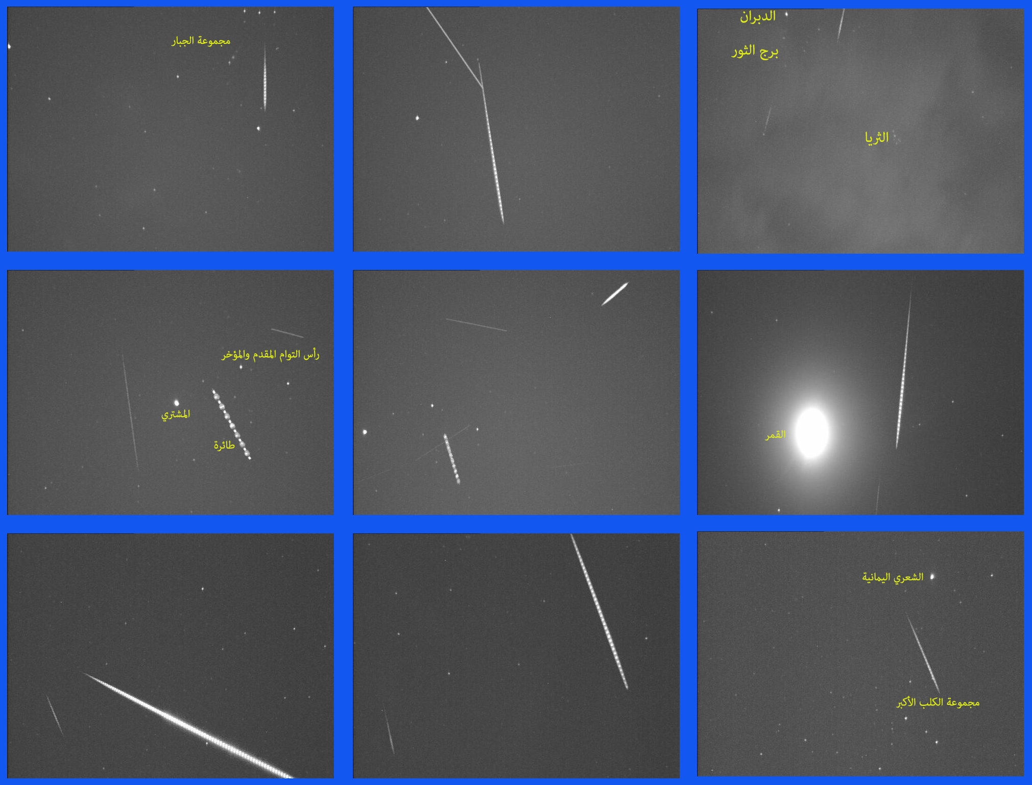 وبعد تصوير الشهب، تقوم المحطات بشكل آلي بتحليل الصور، وتحديد مسار ولمعان كل شهاب، وبعد ذلك ترسل المعلومات إلى مركز فلكي في الولايات المتحدة في تعاون دولي يجمع المركز مع شبكات عالمية أخرى مماثلة بإشراف وكالة الفضاء الأمريكية "ناسا". ومرفق بعض صور الشهب المميزة التي تم تصويرها، وتظهر في هذه الصور العديد من المجموعات النجمية والأجرام المميزة، ومنها مجموعة الجبار ومجموعة الثور ومجموعة التوأمان ومجموعة الكلب الأكبر وعنقود الثريا وكوكب المشتري والقمر، وظهرت طائرات في بعض الصور، كما وظهر في بعض الصور أكثر من شهاب، علما بأن مدة تعريض كل صورة هو 8 ثواني.