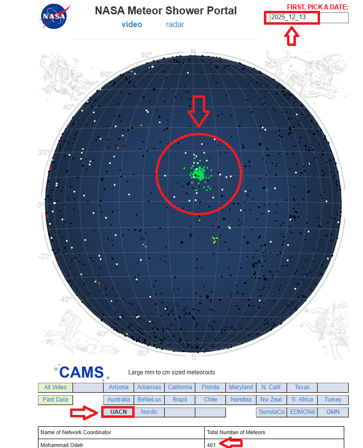 وثقت شبكة الإمارات لرصد الشهب والنيازك التابعة لمركز الفلك الدولي نشاطا مميزا لزخة شهب "التوأميات"، حيث صورت الليلة الماضية 13-14 ديسمبر 2025 أكثر من ألفين صورة وثقت فيها شهب معظمها تابعة لزخة شهب "التوأميات" ظهرت في سماء الإمارات، وتقوم الشبكة بشكل آلي بتصوير الشهب حال ظهورها في السماء، وهي تتكون من ثلاث محطات منتشرة في أماكن مختلفة في صحراء أبوظبي، وتحتوي كل محطة على 17 كاميرا فيديو حساسة للضوء الخافت، قادرة على تصوير شهب حتى القدر 6.5 تقريبا.