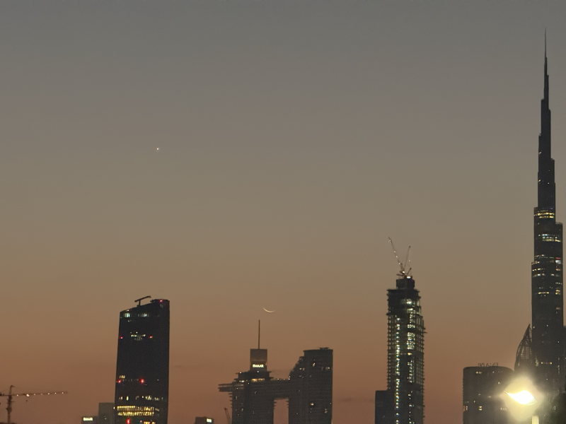تمت رؤية الهلال : ذكر عضو المشروع الدكتور بلال الشمَّاع من مدينة دبي في محافظة دبي ان السماء (نسبة الغيم) كانت صافية والحالة الجوية كانت صافية وتمت رؤية الهلال بالعين المجردة وتمت رؤية الهلال بالمنظار وتمت رؤية الهلال بالمرقب وتمت رؤية الهلال باستخدام الكاميرا